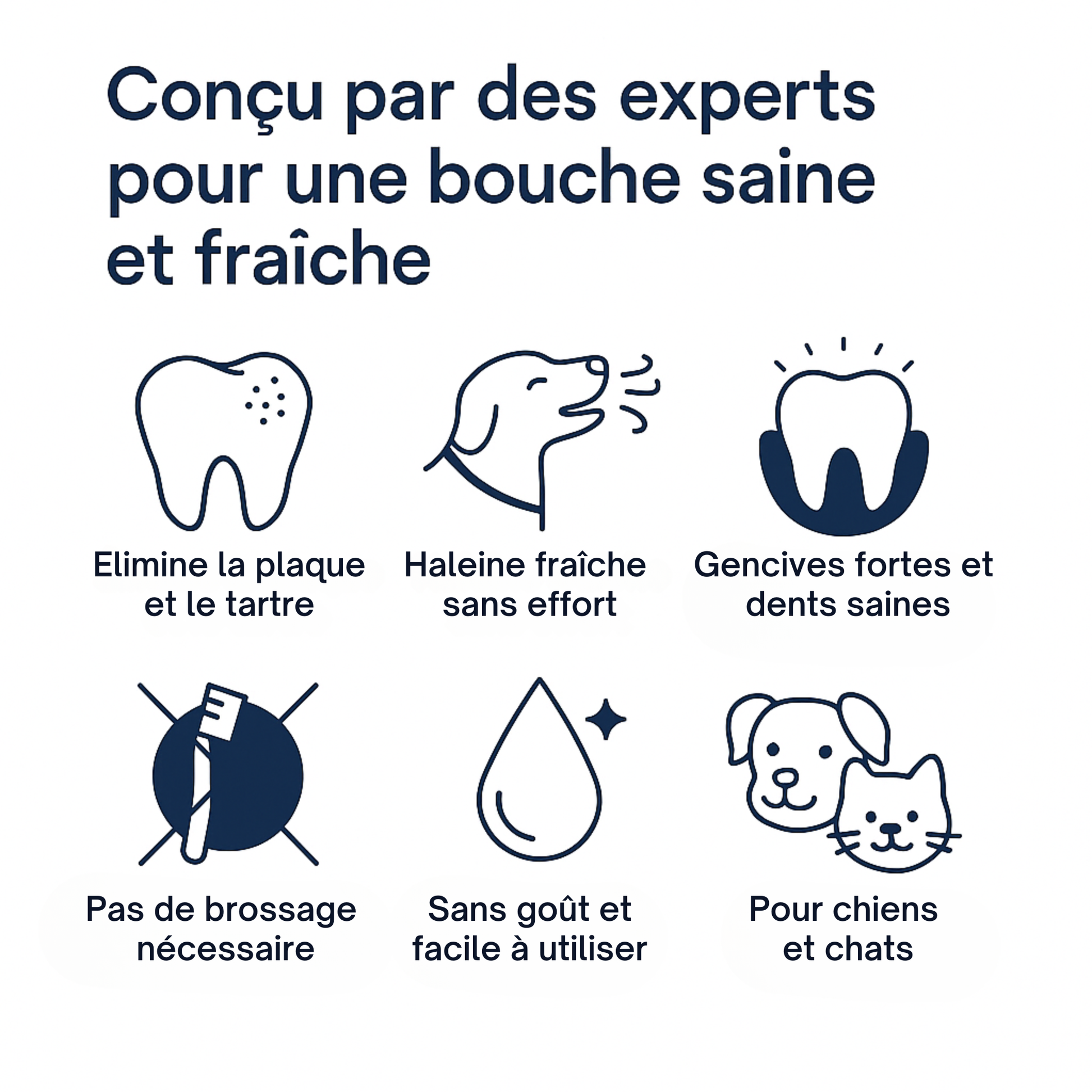 Pulvérisez quelques jets directement dans la gueule de votre chien, de préférence après ses repas. Aucun rinçage nécessaire. Pour les chiens plus sensibles, vous pouvez aussi mélanger la dose au contenu de sa gamelle.